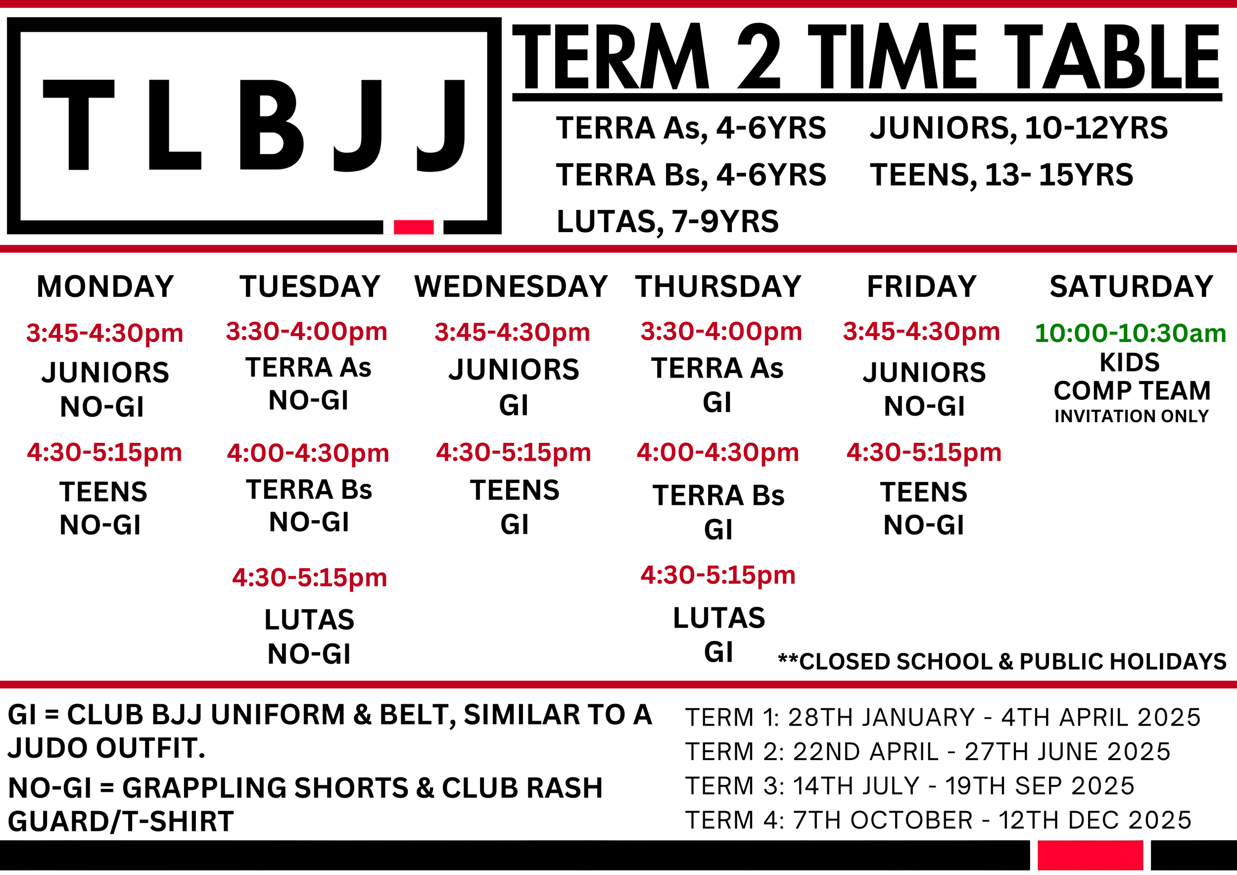 the TLBJJ kids program strives to build bully-proof, positive, community minded young martial artists in a safe inclusive ENVIRONMENT.